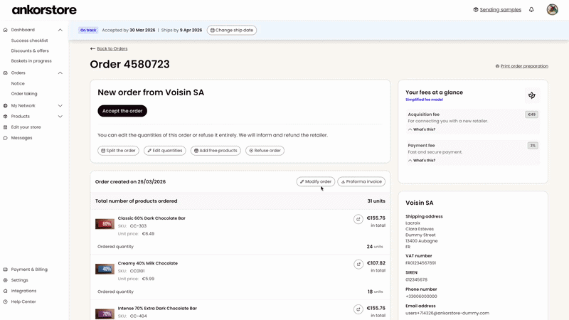 >>> Easily offer an alternative when a product is unavailable and secure your sales by making more precise adjustments to your orders in just a few clicks.