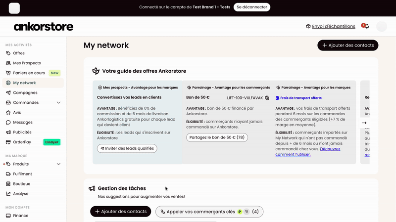 - Appliquez cette remise aux commerçants directement depuis My Network :