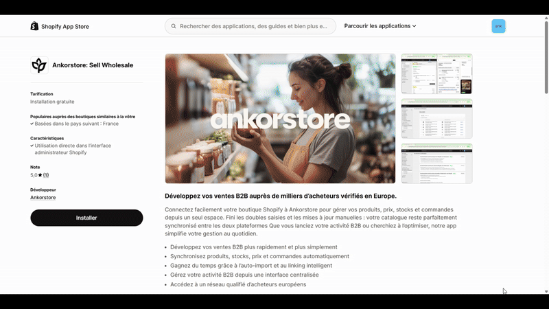 - Téléchargez l’app Ankorstore: Sell Wholesale gratuitement depuis le Shopify App Store